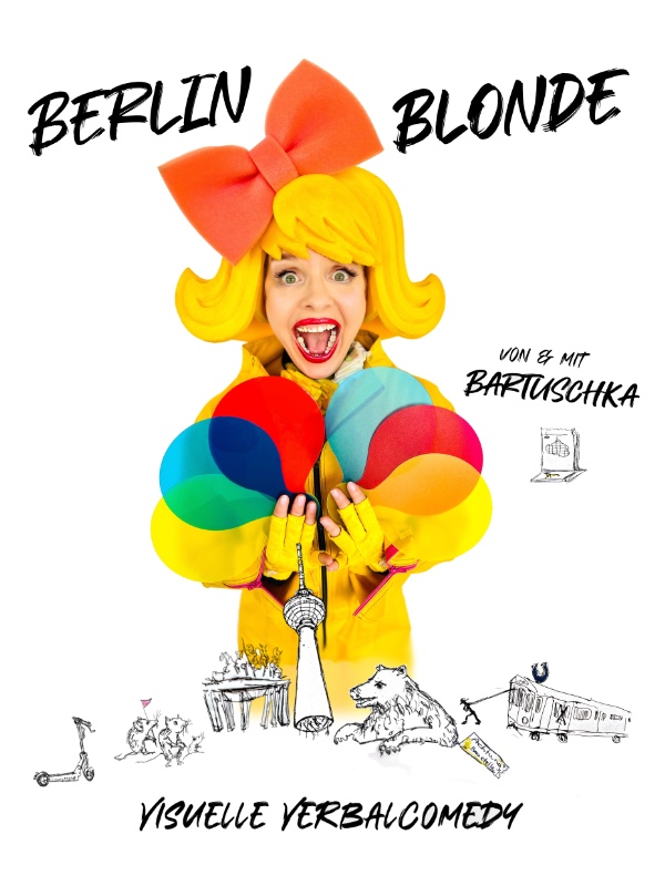 Improvisation und Interaktion, gepaart mit wortwitzigem Frontal-Entertainment: In ihrem Solo „Berlin Blonde“ begeistert die Pantomimin und Moderatorin mit Verbalartistik, Gesichtsgymnastik und Körperkomik.